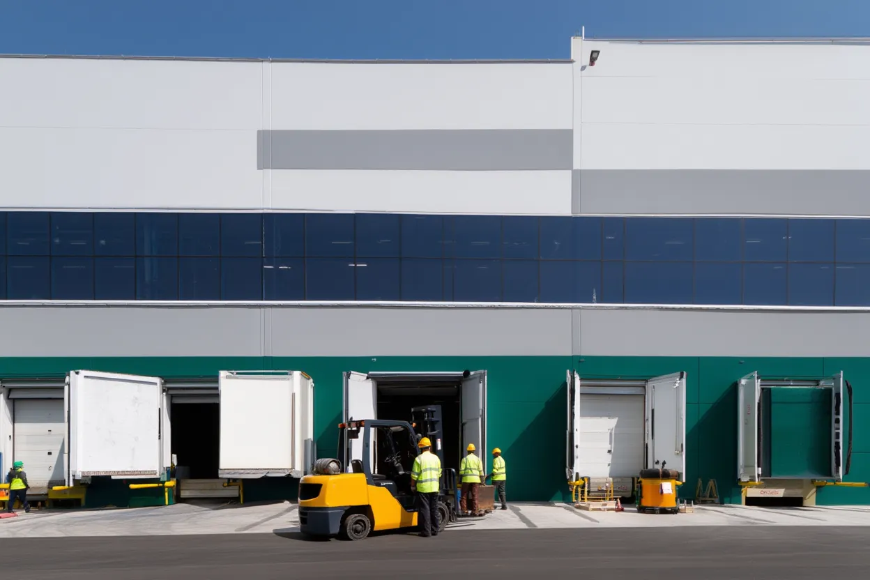 - Эффективное размещение погрузочно‑разгрузочных зон. По торцам здания предусмотрены широкие ворота, обеспечивающие одновременную работу нескольких транспортных средств без создания пробок.